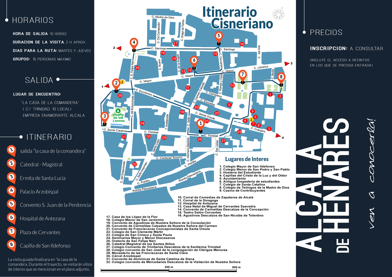 Por el horario fue imposible integrarnos a un recorrido guiado, solo pudimos acceder a un plano de la ciudad y, a disfrutar!!! del gran patrimonio histórico artístico; de la Alcalá Medieval, de las tres culturas con sus barrios cristiano, judío y musulmán; de la Alcalá de las Artes y las Letras; de la ciudad de las cigüeñas, que identificadas con el casco histórico anidan principalmente en espadañas y campanarios.